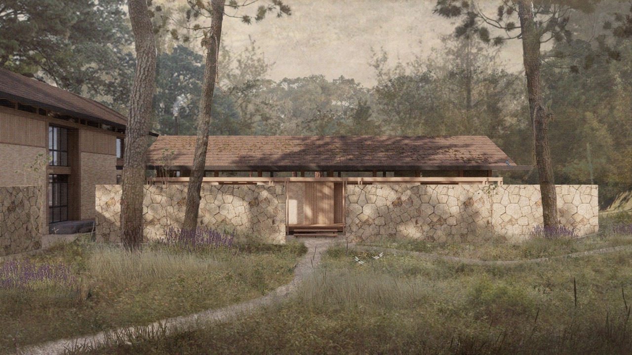 La forma nace de escuchar el entorno: estructuras que se elevan entre encinos y ocotes; cubiertas que resguardan. Volúmenes que se desplantan casi flotando, tocando ligeramente el suelo para que la tierra siga siendo tierra. Umbrales que nos enmarcan el movimiento del bosque y el cielo.
